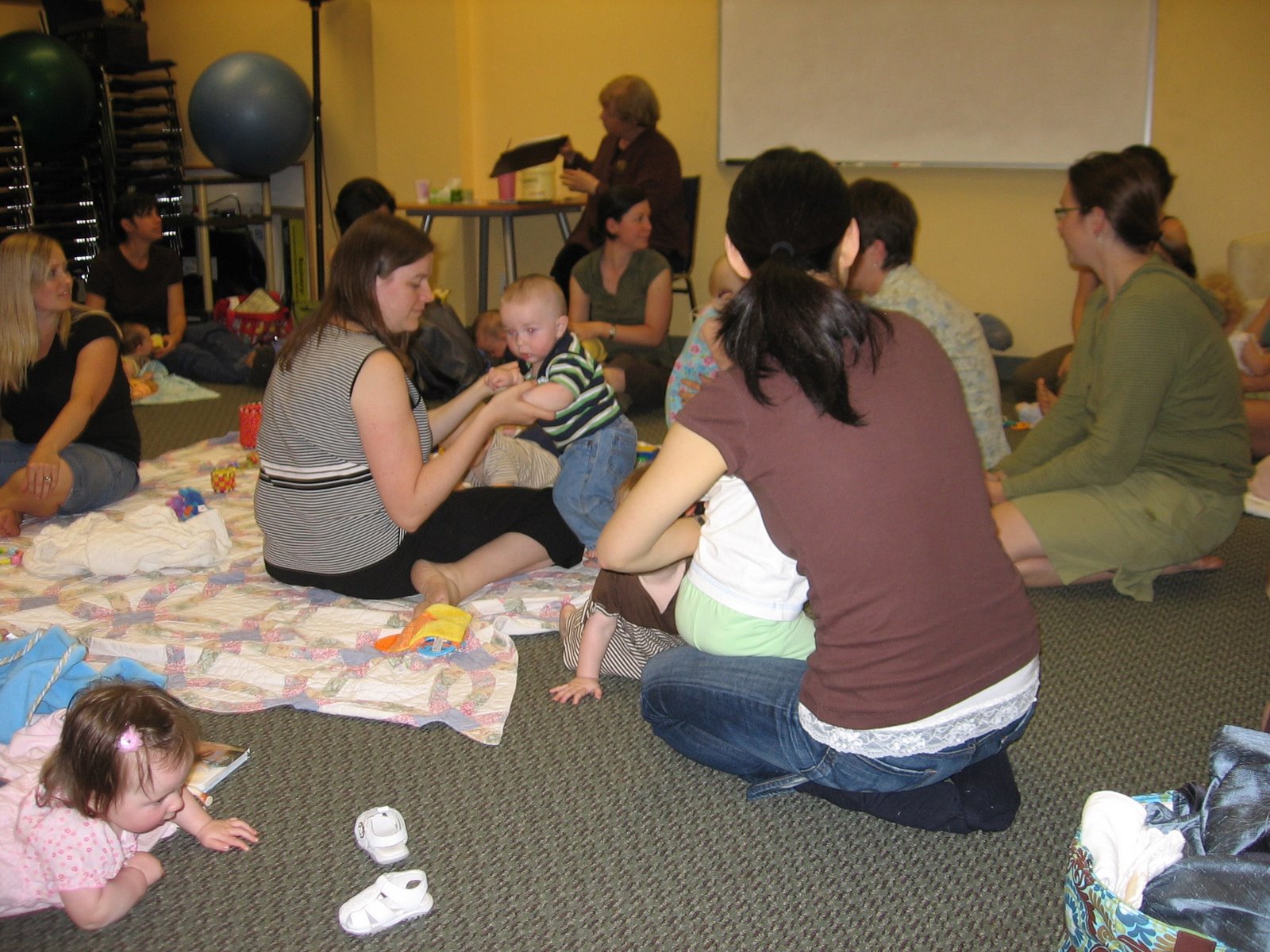 Once a month Quinn and I attend a class/support group at a local birthing center for mom\’s with similar aged babies. It\’s a great place for the babies to mingle and chew on each other\’s toys and for mom\’s to talk about our similar issues. I always look forward to the first Monday of every month for the Sitters & Rollers class and I\’ve met so many nice women. The mom\’s have also formed their own non-affiliated mom\’s club and we support each other and exchange information on message boards and also get together for coffee, book clubs, outings, etc. This Wednesday night is Mom\’s Night Out…wahooo!!