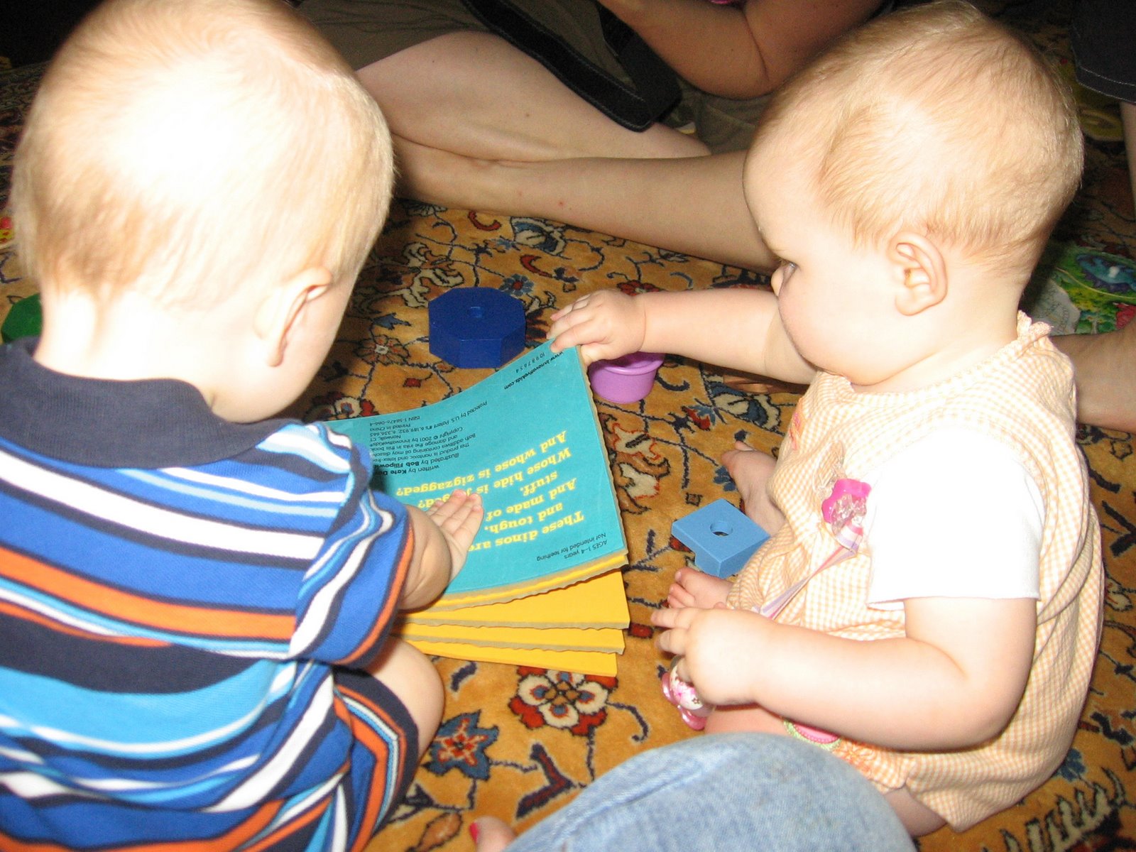 And here\’s Quinn with Zoe. All the kids loved this rubbery dinosaur book.