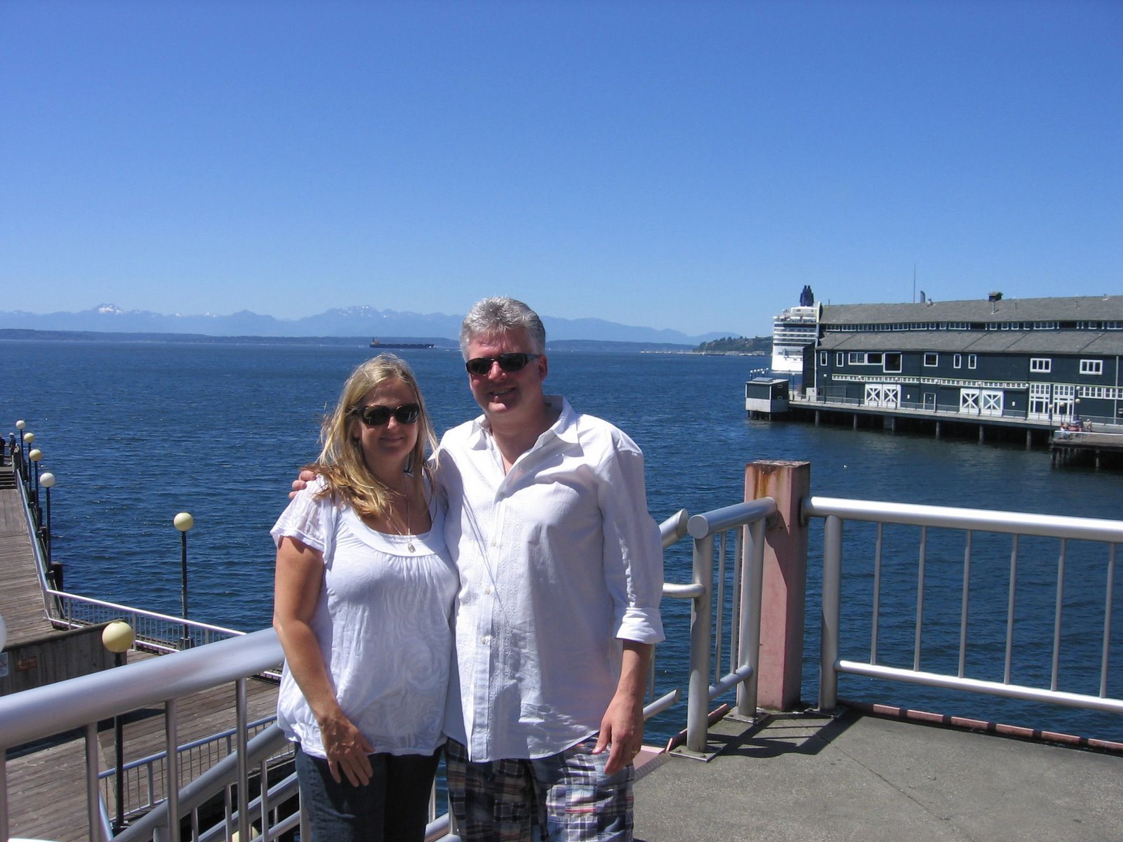 Amy and Don overlooking The Sound with a clear view of The Olympics in the background.