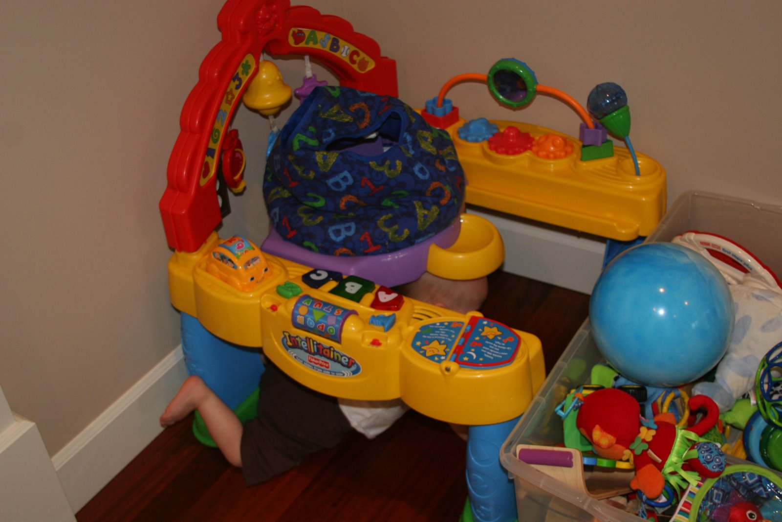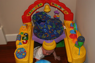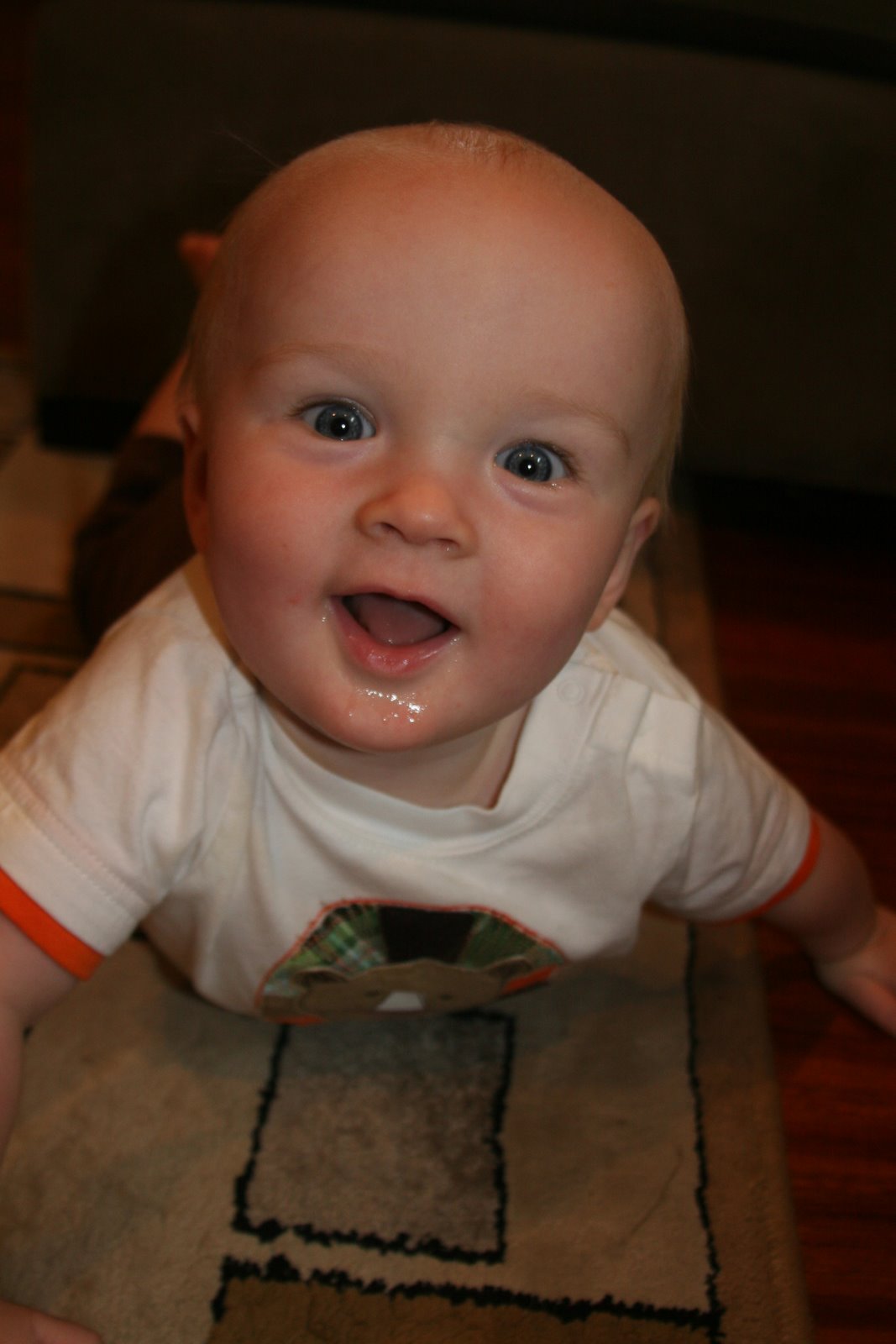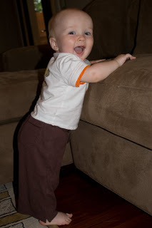 Quinn loves to pull himself up and stand. Here he is holding on to the couch and then looking cute.