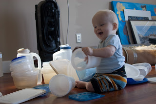Here are some of the fun things that Quinn has been up to lately. Here he is having a good old time with tupperware while I unpacked (yes unpacked) a box of glasses. Only one more box to go.
