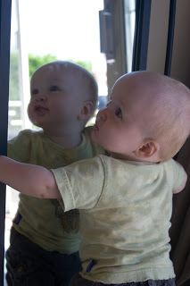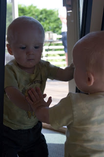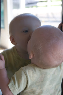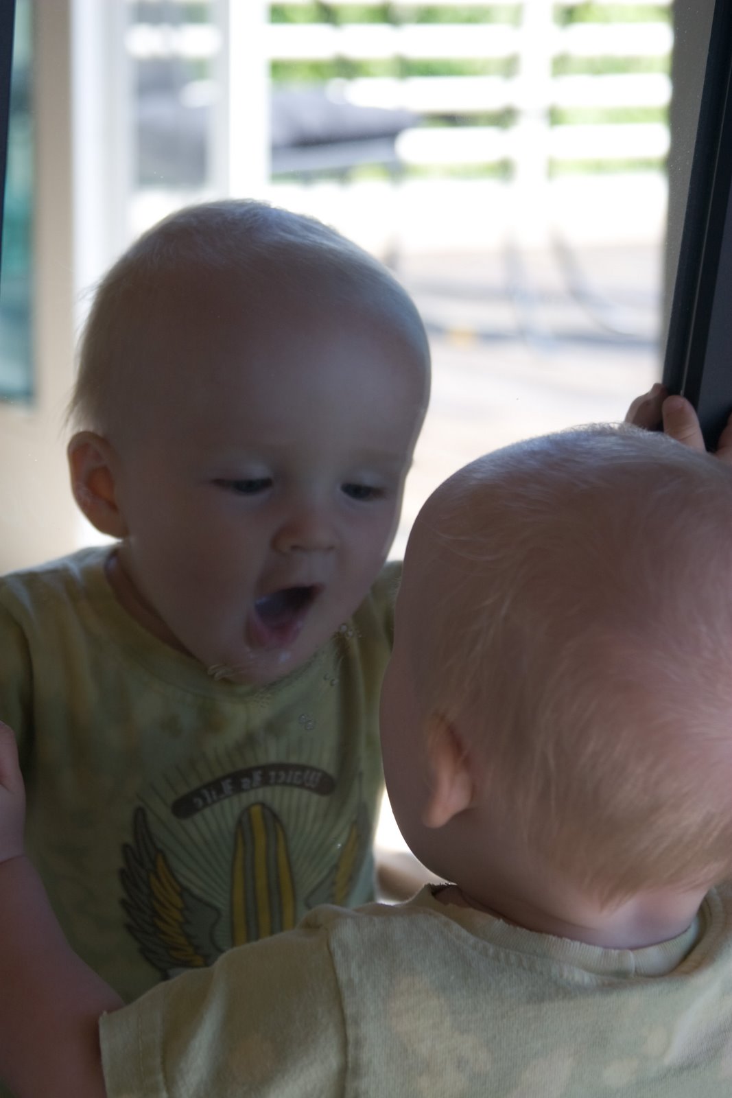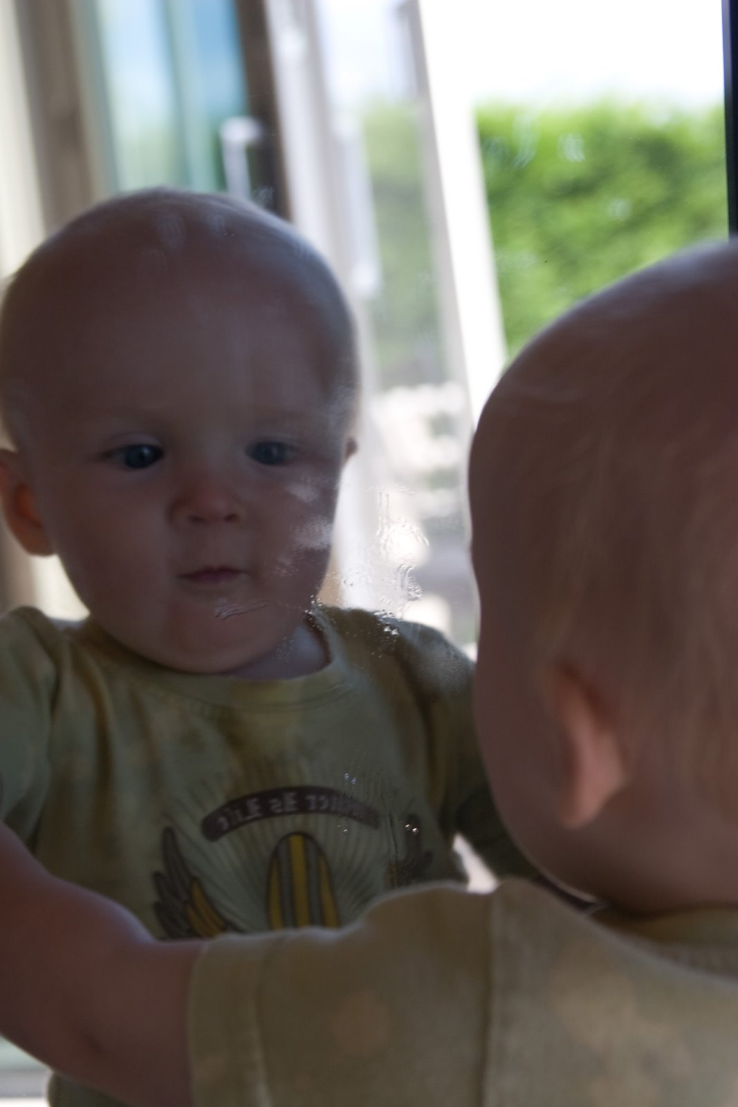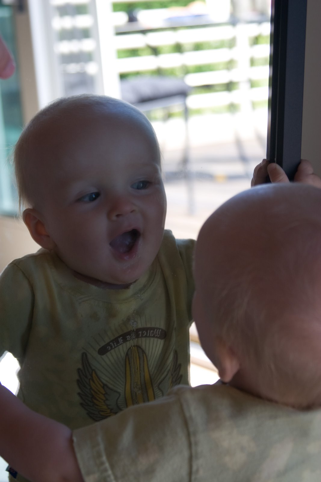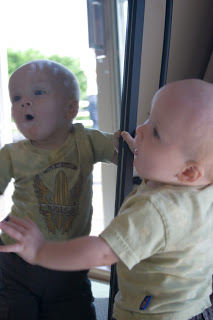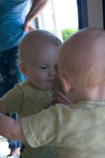 …Quinn\’s the fairest of them all! We were inside taking a break from the very loud Blue Angels at John & Lynda\’s and Q decided to check himself out in the mirror.