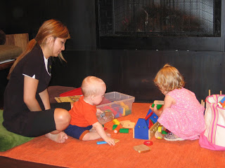 On Monday Joanne and I had pedicures at a salon that uses all non-toxic products and they provide free babysittings every Monday. Quinn went happily with the sitter and had a great time while Joanne and I relaxed. Check him out playing by the \”fire\” place.