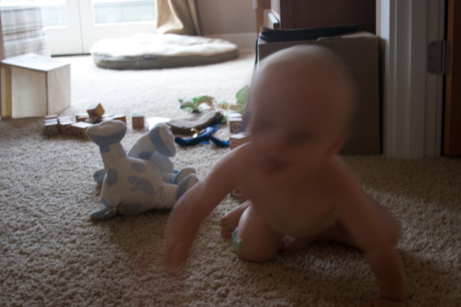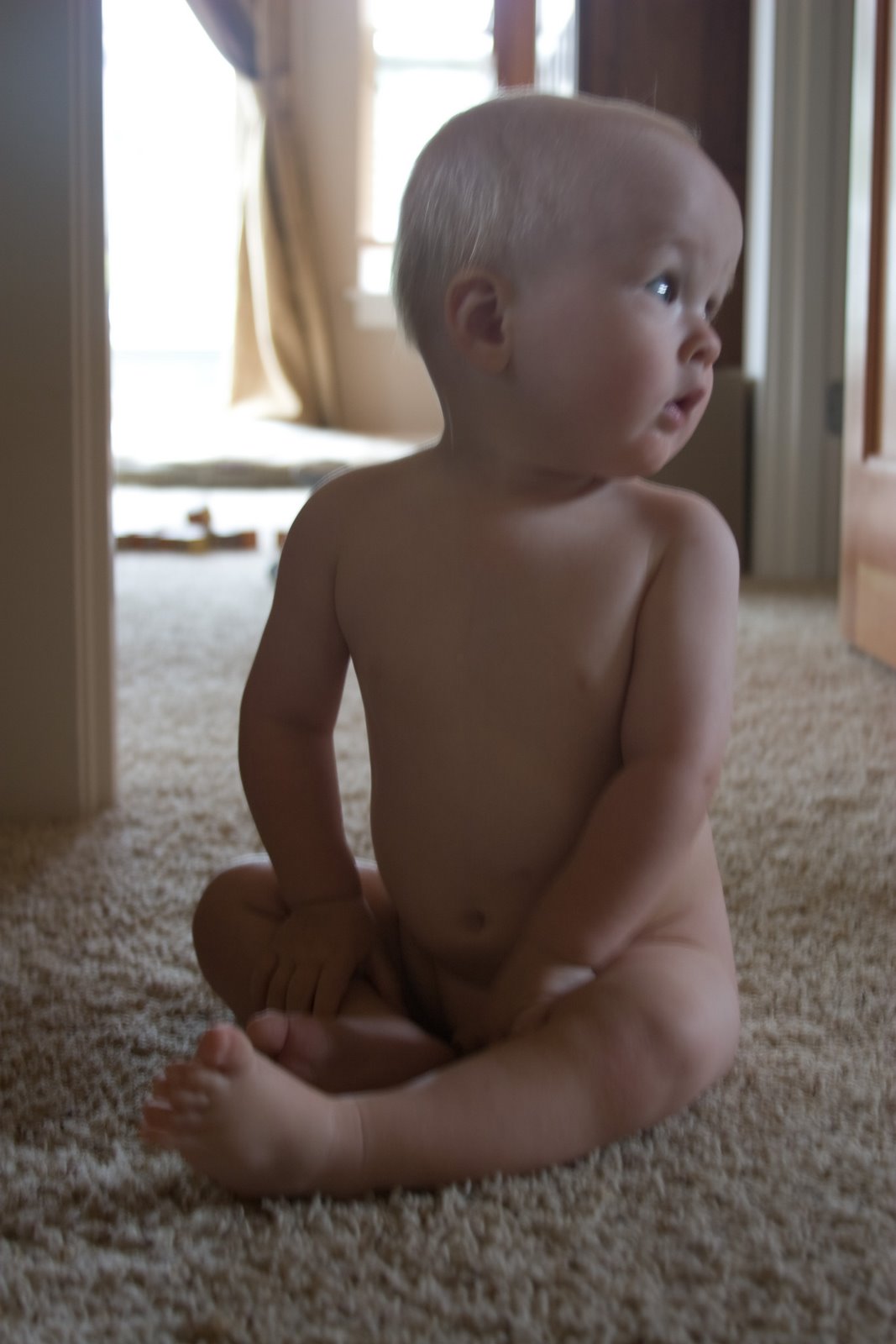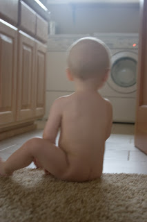 Quinn got a good night\’s sleep last night and was raring to go today. After a bath this morning, I put him in a diaper and let him have fun in the bedroom while I got dressed and worked on some laundry. I rarely put him in a diaper without shorts/pants because he\’s a clever little guy. Well, this is what I walked in to…