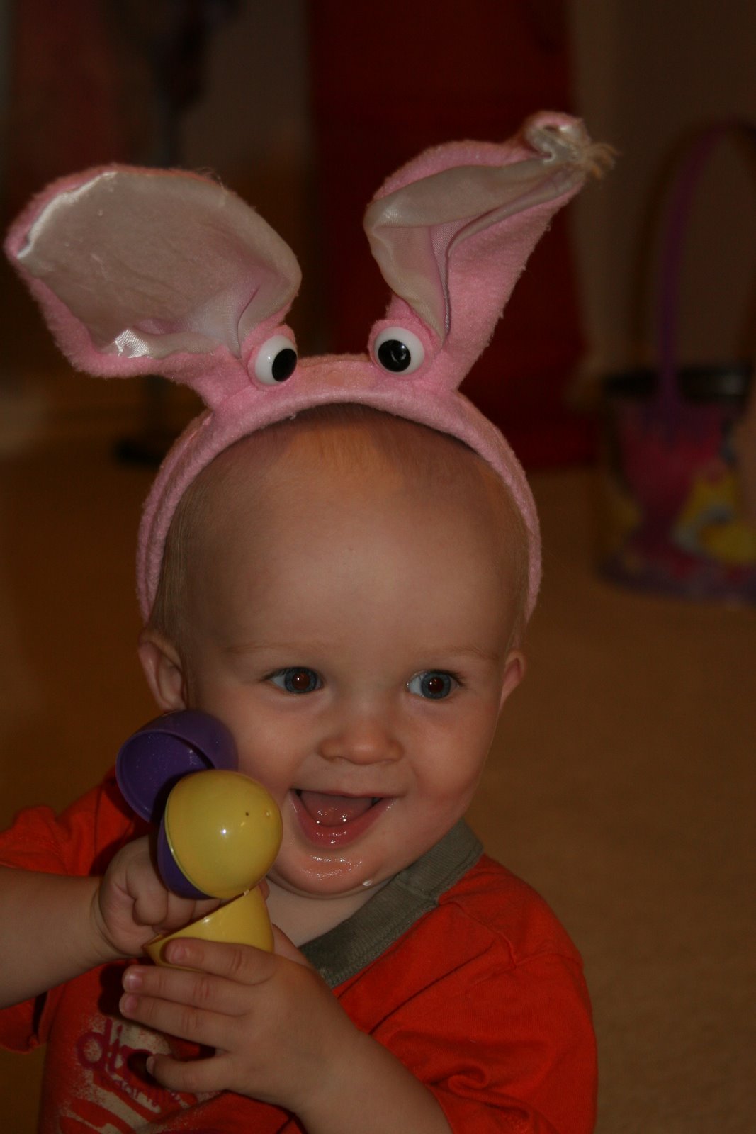 And later Christina and Quinn were playing in her playroom and Christina put some bunny ears on Quinn. He didn\’t seem to mind them at all 🙂