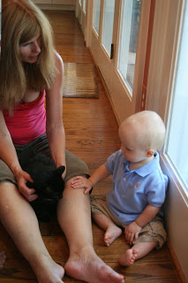 And here\’s Joanne introducing Quinn to their cat Sam.