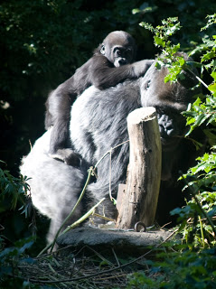 Then we headed to the Woodland Park Zoo which is very close to Greenlake. There is a baby gorilla that was born just a couple of weeks after Quinn so we wanted to check him out. At one point he was making a little bit of a ruckus and the mama gorilla swooped him up and threw him on her back. Pretty funny! Here are some pics of the mama and baby.