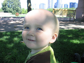 After class we walked accross the street to nice shady park for a little snack before heading home. Here\’s our boy hanging out…