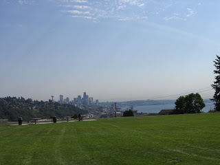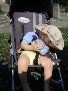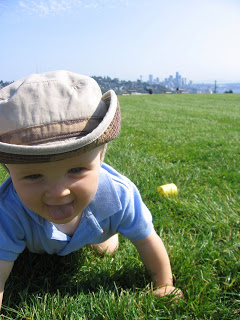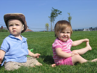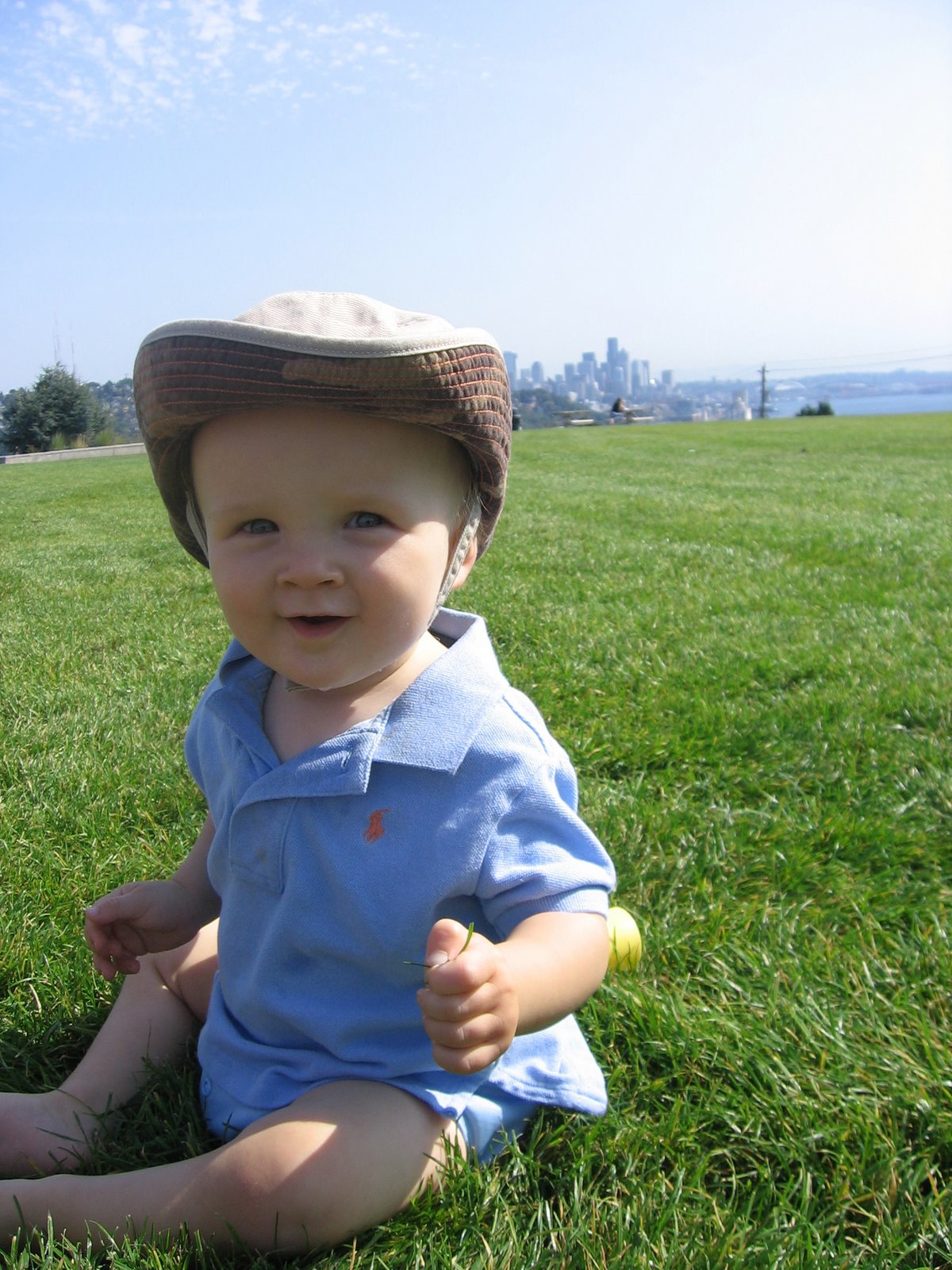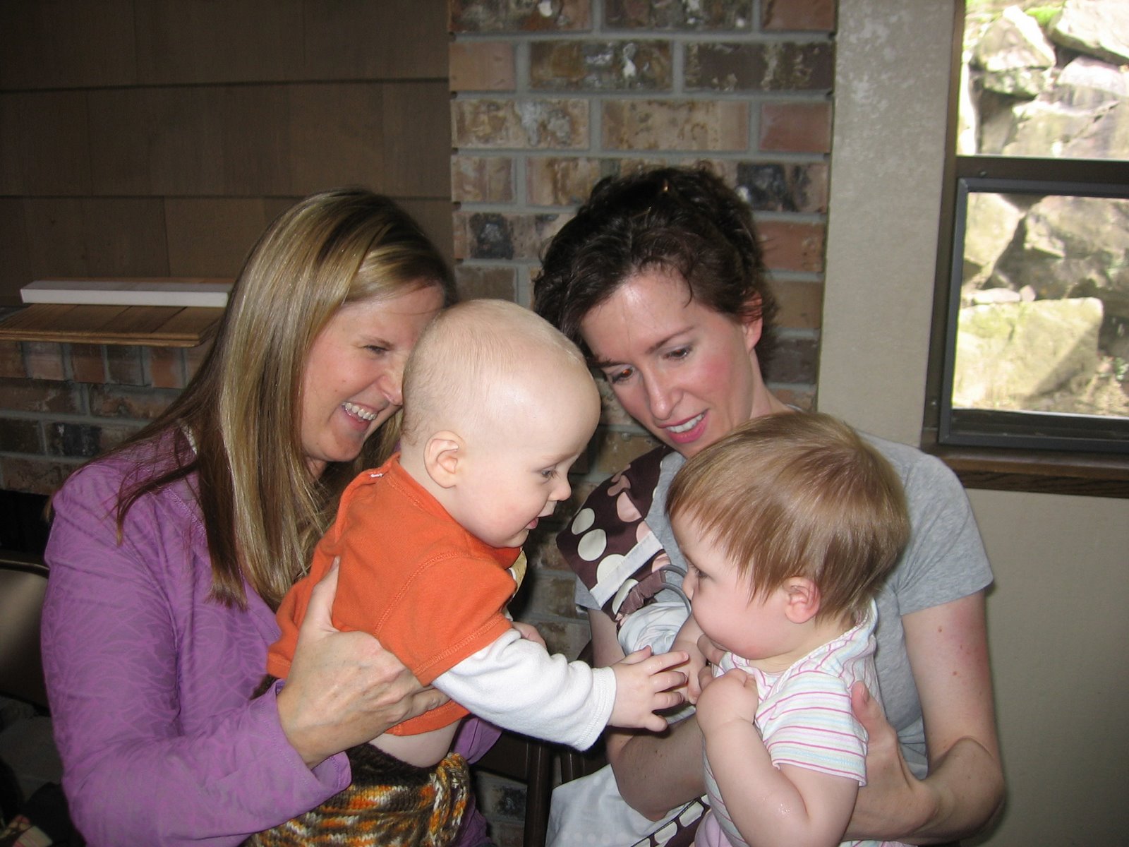 Today Quinn and I met Mary and her daughter Abby for a walk around Magnolia and then we played in the park for a while. I met Mary at the first Babywearing meeting that I went to a couple of days after we moved to Seattle. Abby is about 3 months older than Q. Here\’s a pic from April when we first met.