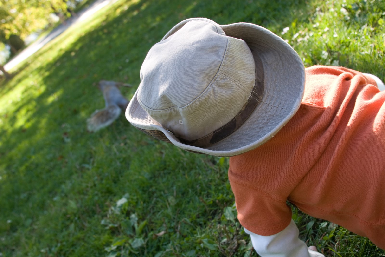 Lots of people feed the squirrels so they aren\’t afraid of people. One approached our blanket and then Quinn took off after it.