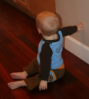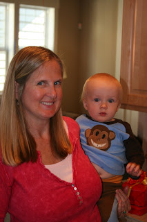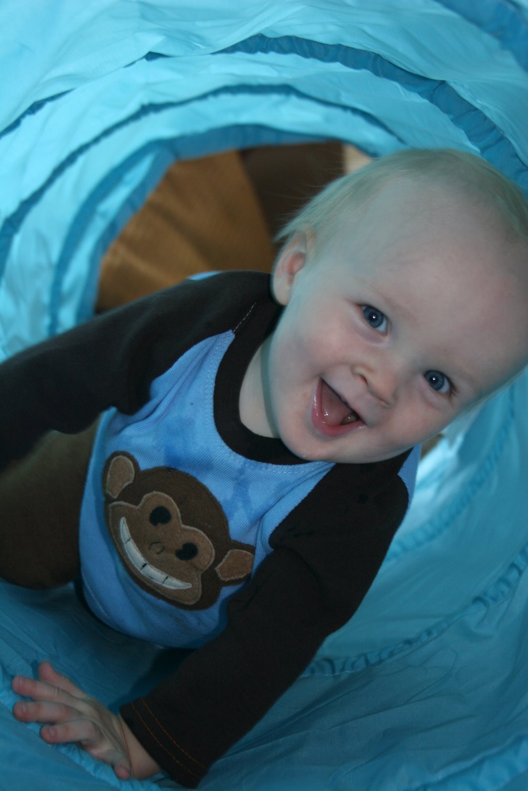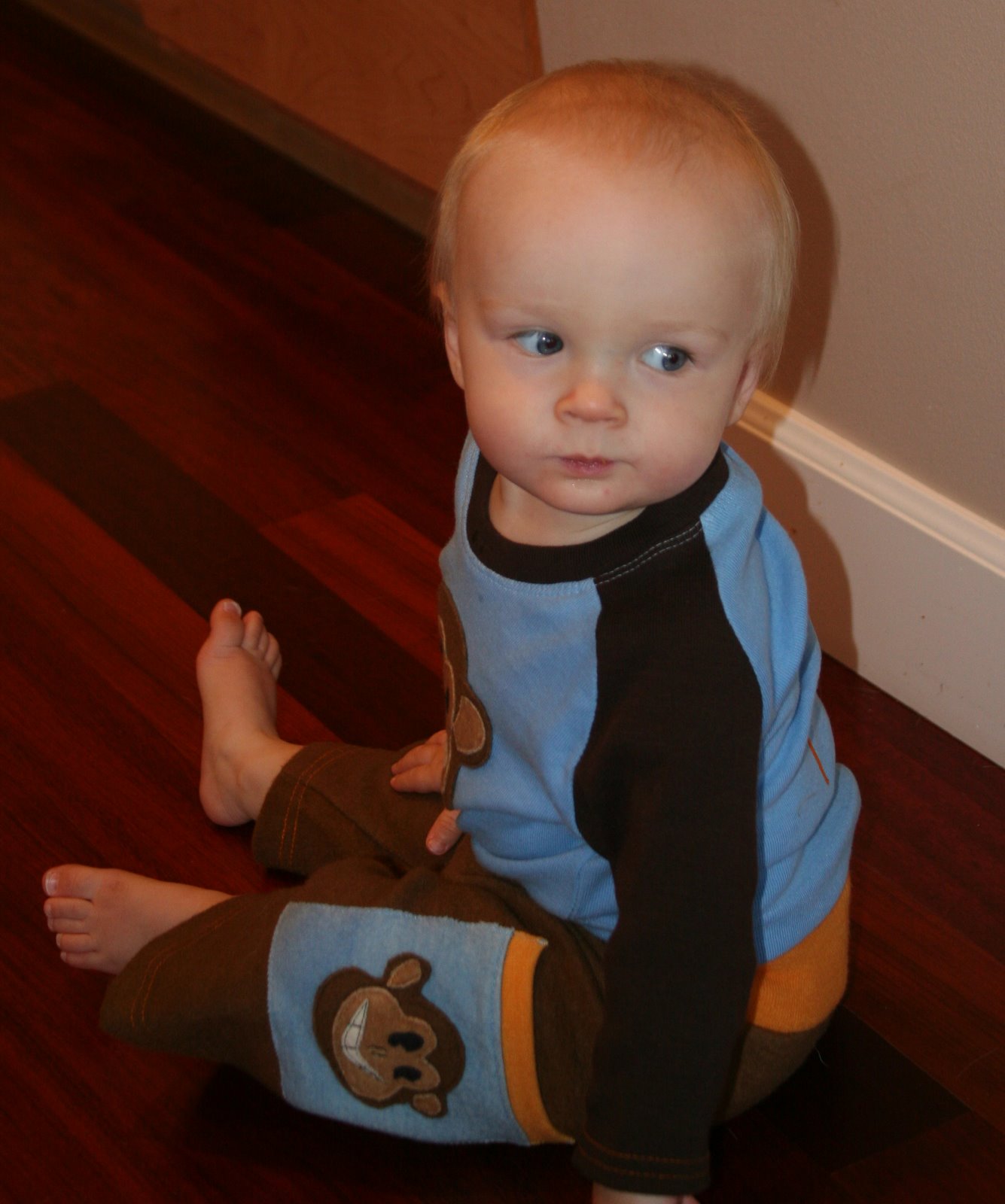 Here\’s Quinn in his special little monkey outfit that I had made for his birthday.