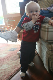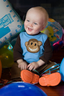 I was trying to get a pic of Q in his bday outfit and this is the best I could do. He looks pretty cute.