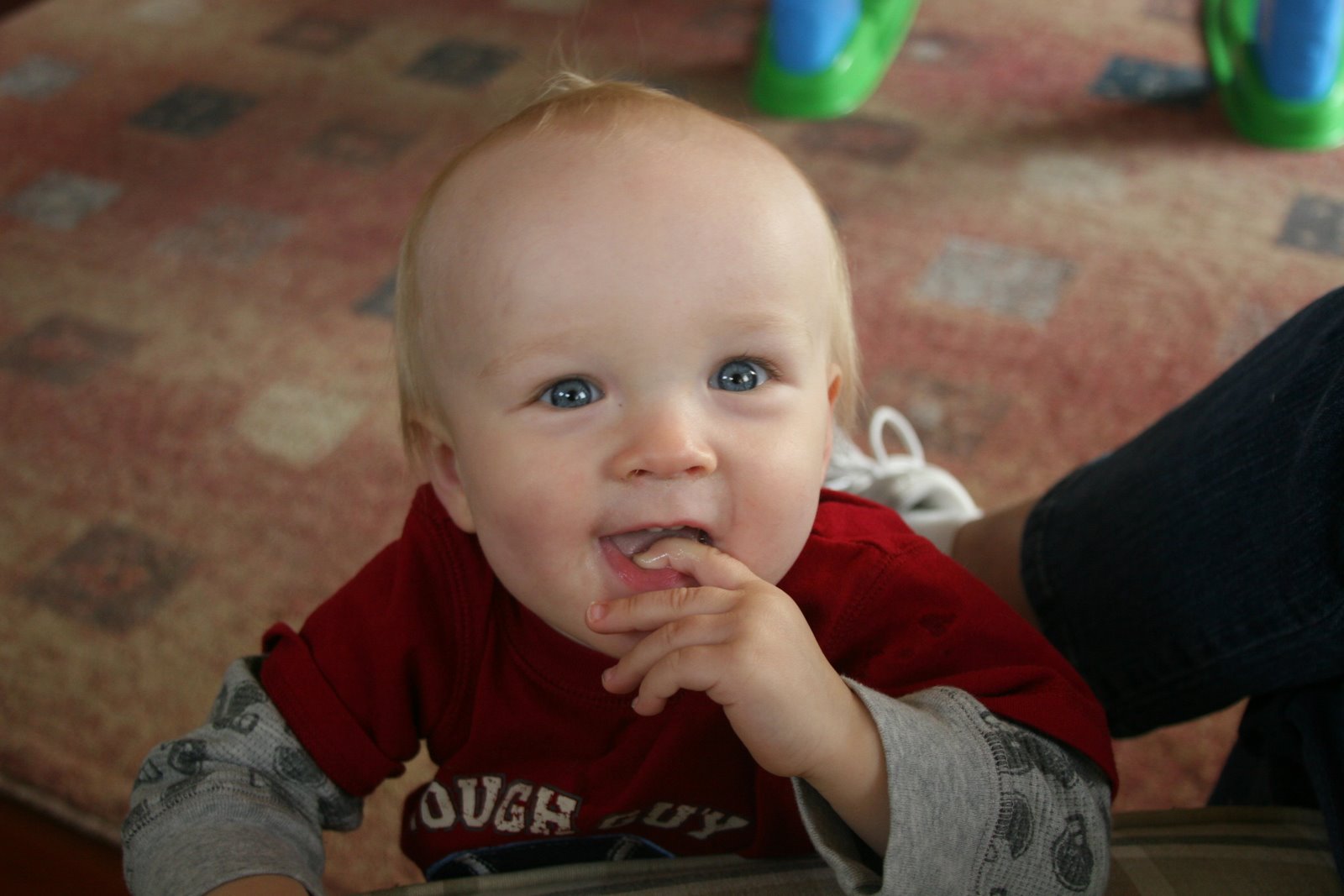 I haven\’t posted since the big birthday bash so I thought I would bring you up to date on our happenings. After having a great time at Q\’s bday party, Quinn, Don and I all came down with a cold/flu. Quinn started with a fever and runny nose and then had a couple of tough nights. So, we were all feeling pretty crummy and tired. At the same time we realized that Quinn has another tooth coming in on the bottom, hence the finger in the mouth at all times. But, we\’ve had a couple of good nights of sleep and we\’re all feeling much better although we were very sad to put Gram on a plane home this morning. We will all miss having her around 😦
