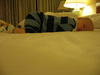 Napping with his bum up in the air at the Hilton.