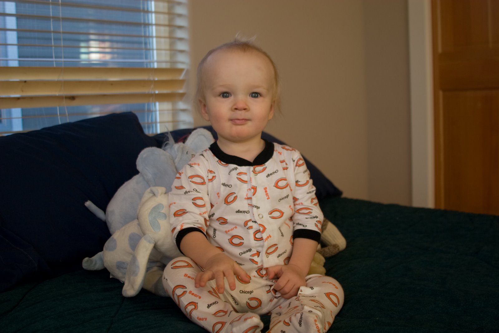 Da Bears Published on December 18, 2008 by amyewhitelivecom Here are some shots of Quinn in his Bears onesie. He\’s looking pretty cute, if I say so myself. Love that morning hair!! One of his favorite activities is to hit that little green power button on the computer. Share this: Share on X (Opens in new window) X Share on Facebook (Opens in new window) Facebook Like Loading... Related
