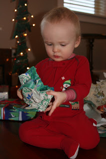 Quinn had some fun opening the presents, although he needed a little help getting them started.