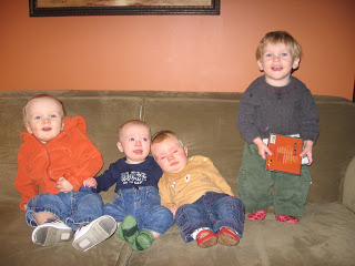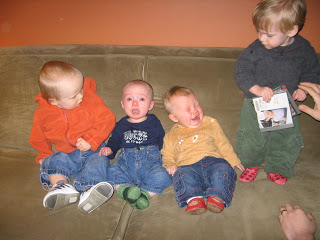 Here are the kids Quinn, Grant (in one of Q\’s outfits), Viviene, and Elan. The babies were making a little noise in the picture and the big boys were checking them out.