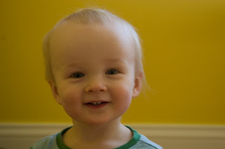 Here he is haning out in the playroom. It is painted a bright, sunny yellow.
