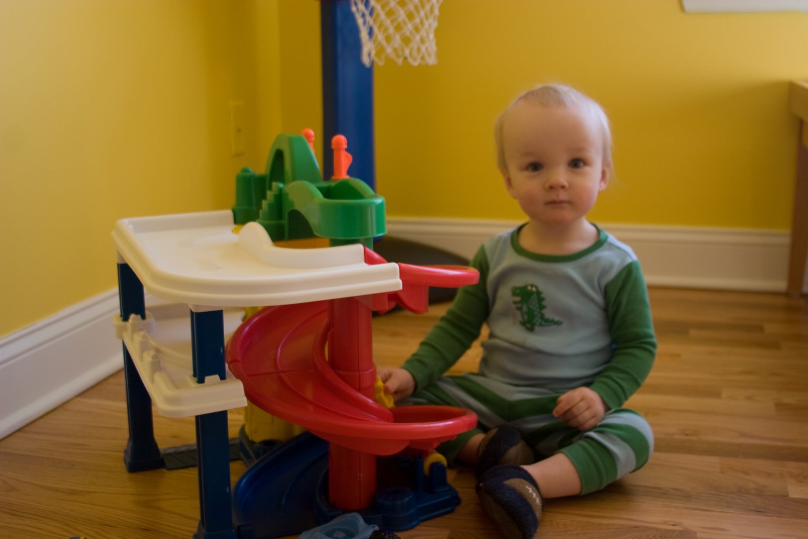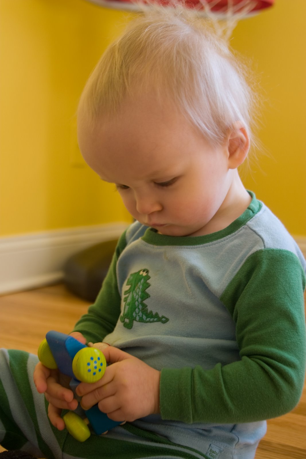 Here he is haning out in the playroom. It is painted a bright, sunny yellow.