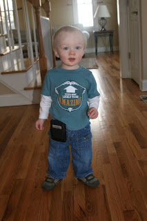 You know how Quinn loves his techie toys. Well, Don found an older, discarded Blackberry at work and brought it home so that Q could have his own Blackberry to stay in touch with all his pals. Here he is ready to go out while staying connected.