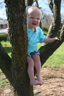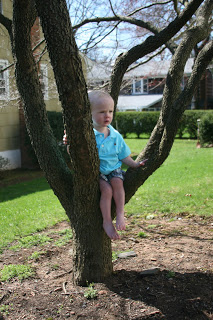I took some pictures of Quinn for easter for the grandparents in easter egg colored outfit. Here he is hanging out in the tree.