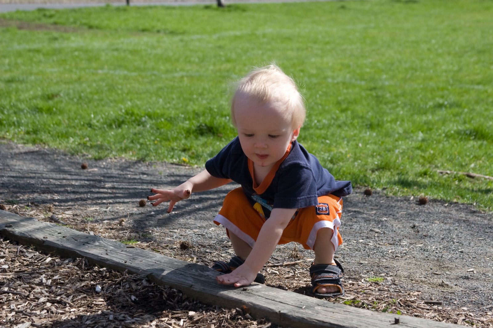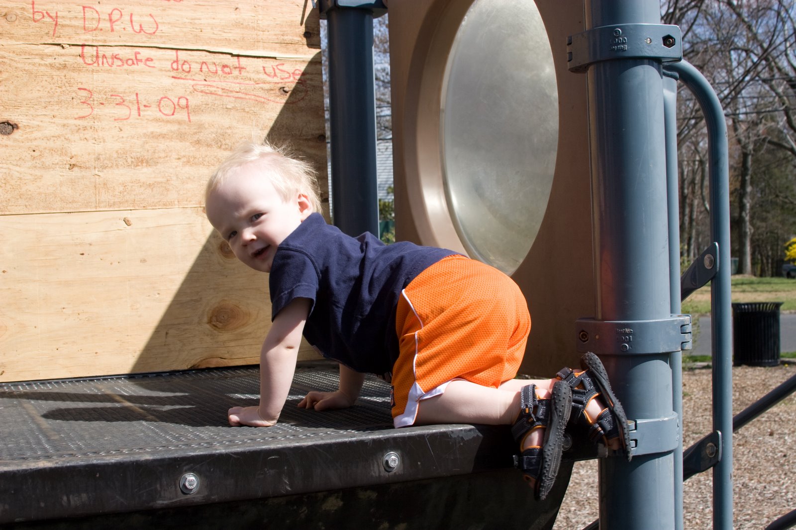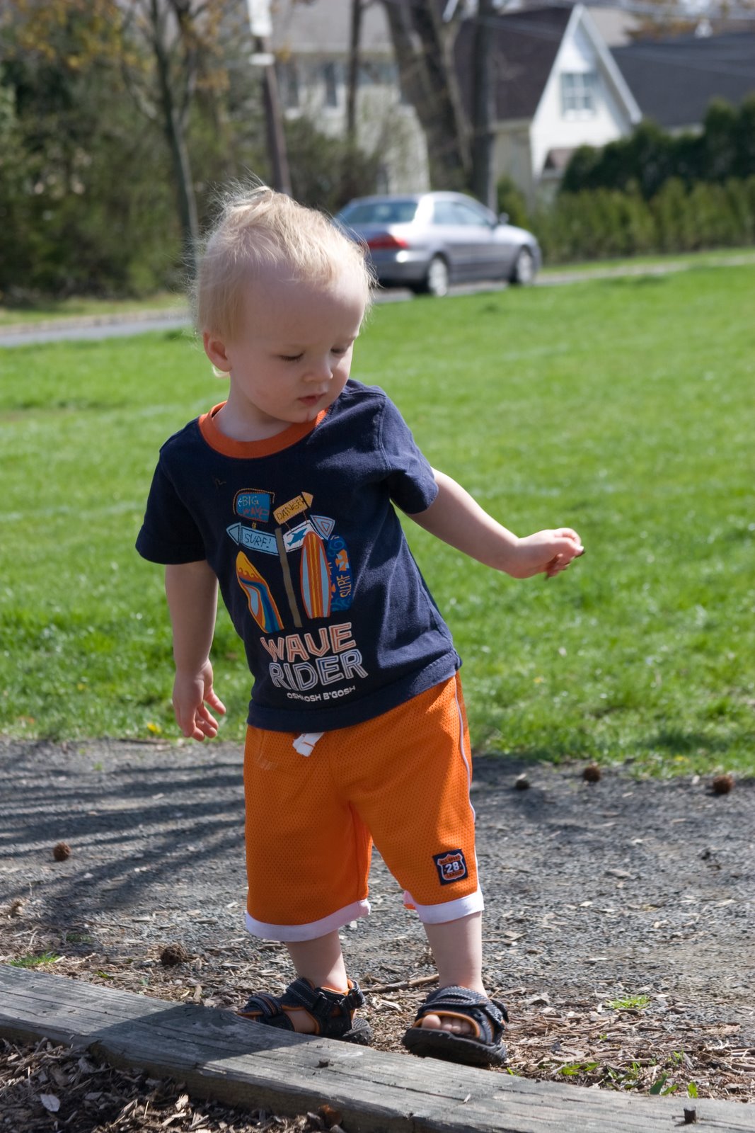 We have a great affection for orange in this household so I couldn\’t pass up a pair of orange shorts for Quinn at the outlet store. We continued our great day at the neighborhood playground and got some shots of Quinn sporting his orange shorts.