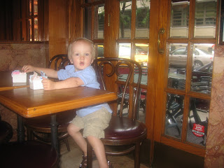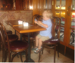 After lunch we (ok, me) had a sweet tooth so we found a very hopping italian bakery. It was pretty yummy!!! Here\’s Quinn enjoying a table of his own and sorting through the sugar packets.