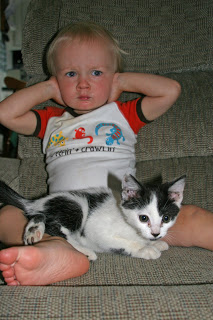 In Nova Scotia we stayed with my cousin Helene and her husband Ernie. Helene\’s mother (Margaret) and my grandmother were sisters. Big hearted Helene just got a kitten, Lucy, that was doomed for a life as a barn cat but she is so sweet that Helene couldn\’t resist. Here\’s Quinn and Lucy — I\’m not sure what noise Quinn wasn\’t enjoying in this pic.
