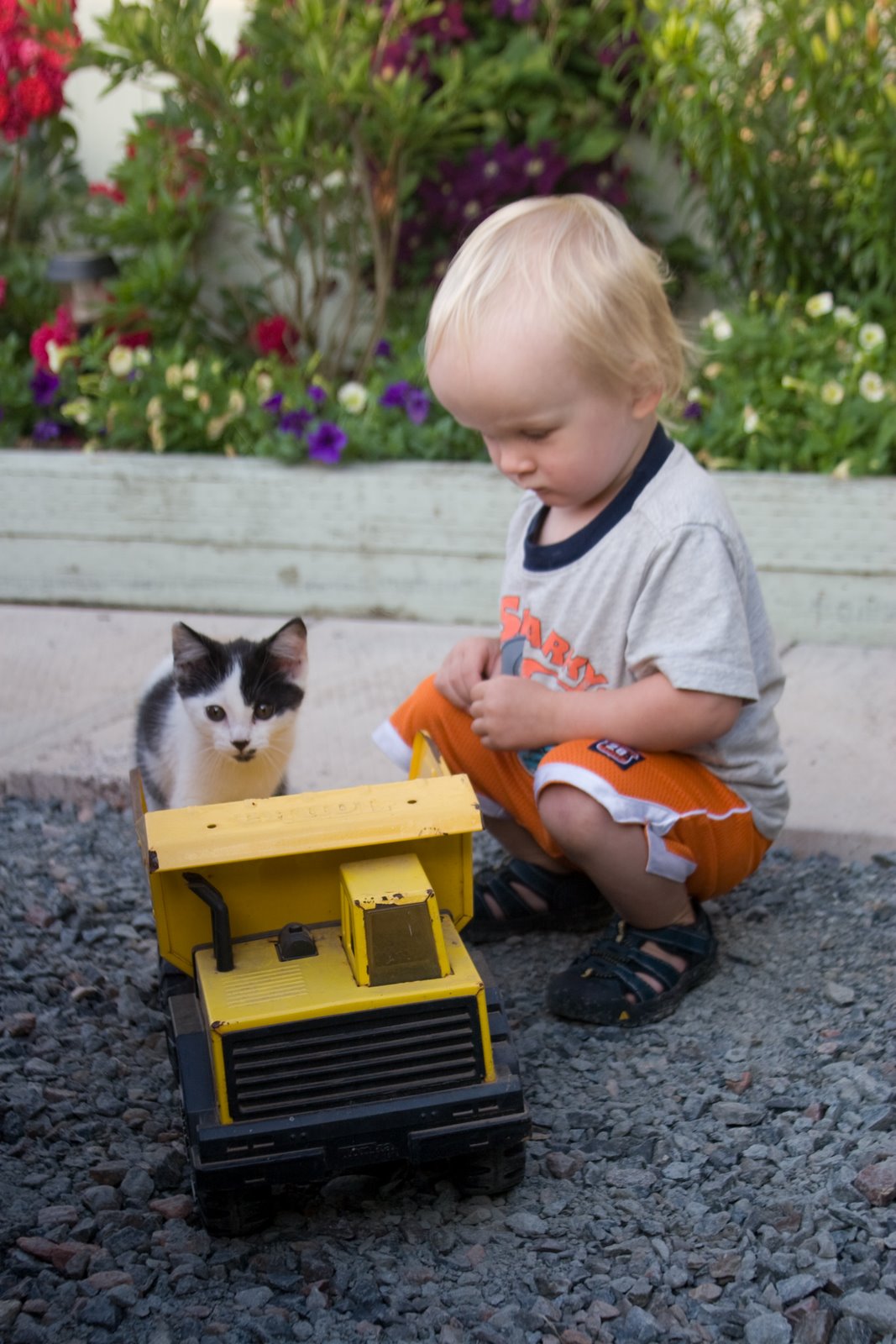 Ernie dug up some toys for Quinn which he very much enjoyed. Quinn would push around the trucks outside while we enjoyed our afternoon cocktails. Lucy was always around and would jump in Quinn\’s truck. Here they are having some fun.