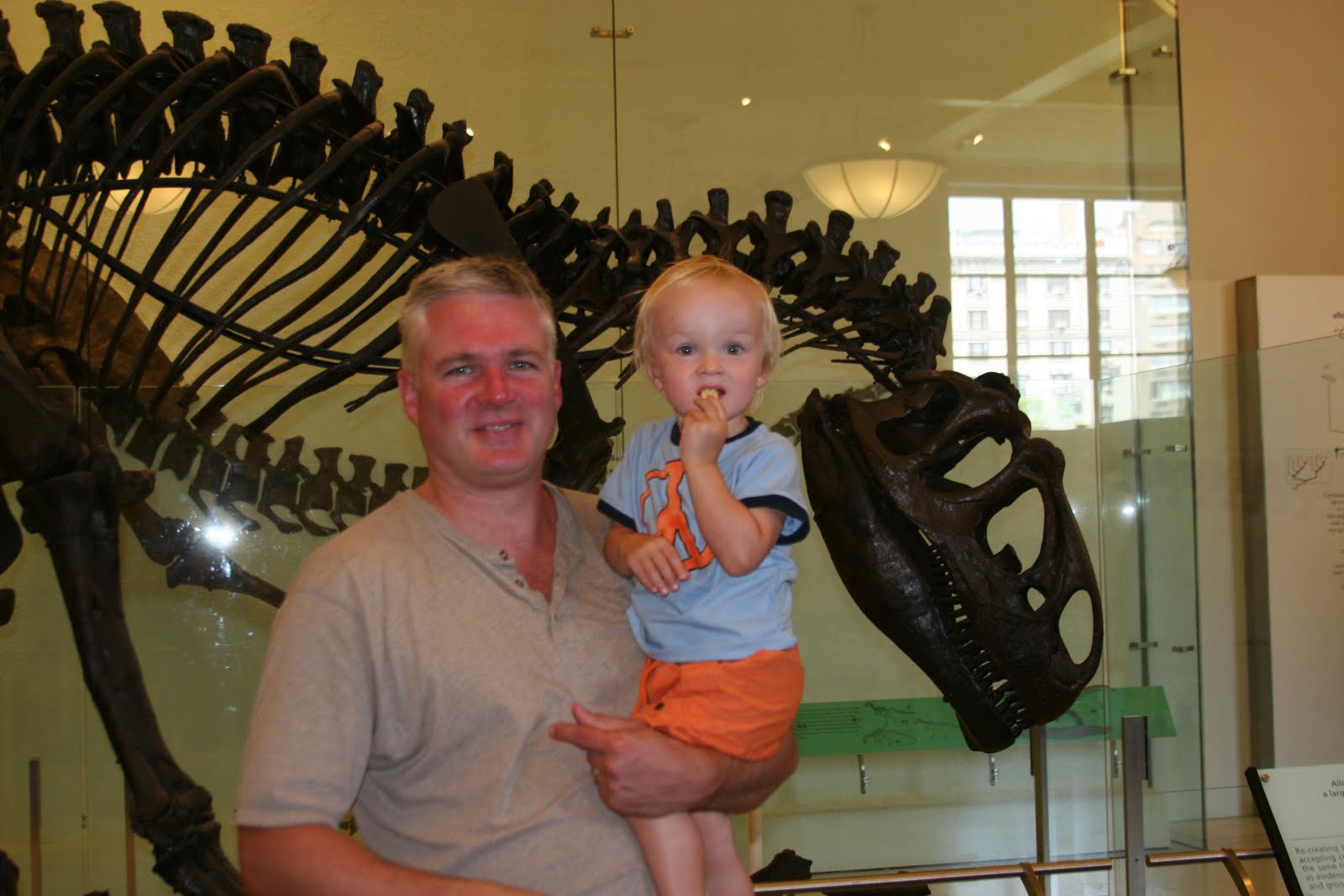 Today we went to NYC with our friends Alison, Damani, and their son Fraser who is a couple of months older than Quinn. Alison is a NC State alumni (go Pack!) and Damani is a UNC and VaTech grad so we will have some NCAA tournament watching friends come March! But, back to business. We started out at the Museum of Natural History. The boys had lots of fun checking out the \”stuffed\” animals and dinosaur bones. Everything needed to be touched 🙂 From there we went to Central park and had a picnic in the grass. What a great day!