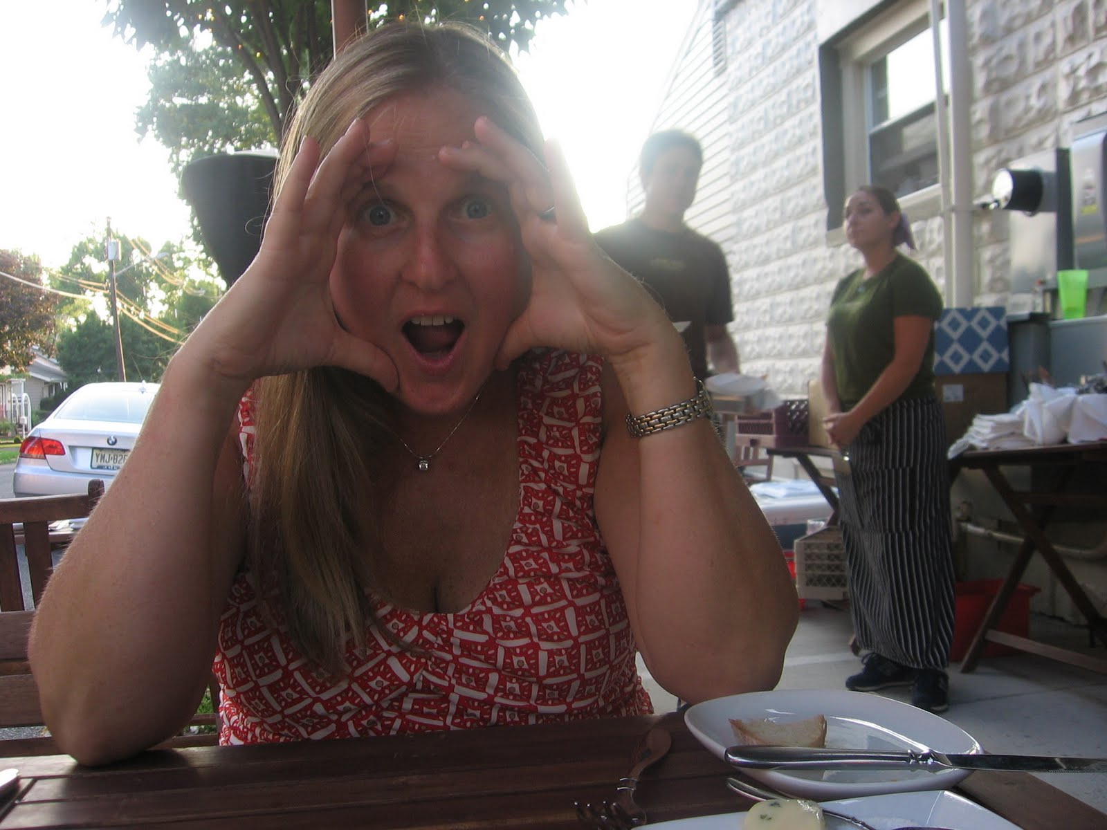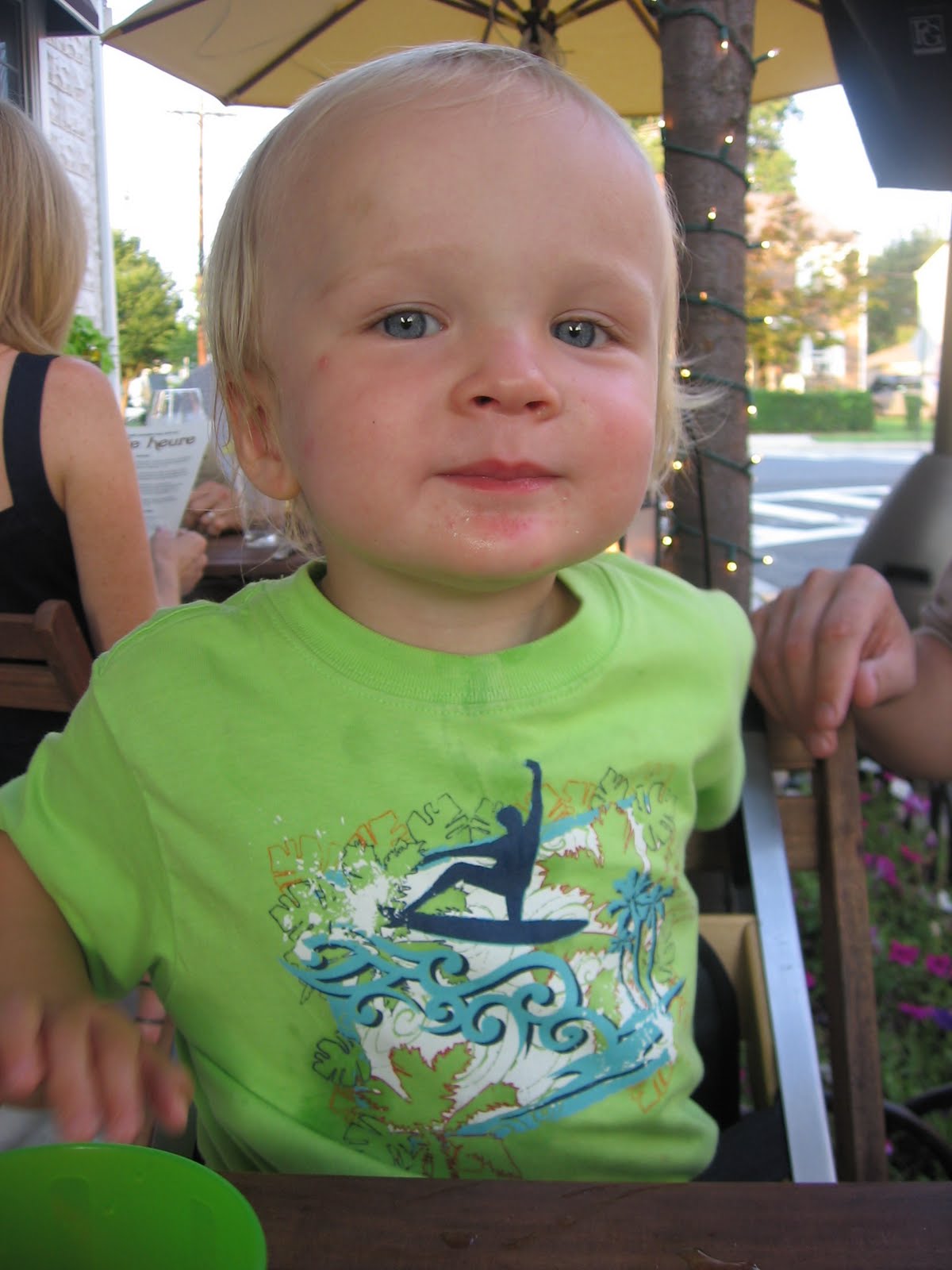 Hands down our favorite restaurant in New Jersey is A Toute Heure. The restaurant only serves seasonal foods that can be found locally. It\’s a brave concept and they pull it off. We especially enjoy it because we can take Mighty and sit outside on their sidewalk cafe. However, on our last 2 trips to the restaurant Quinn has started to get very antsy and we had to take turns walking him up and donw the sidewalk. I think our days of taking Quinn to finer restaurants may be numbered. But, we had a great dinner and got a couple of pics.