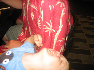 I blogged a couple of weeks ago about our new challenges in taking Quinn out to dinner. We had gone to Benihana for dinner thinking that Quinn would be entertained and happy with the dinner \”show\”. Not…so…much. I must have forgotten that I documented our evening because I just found these pics.