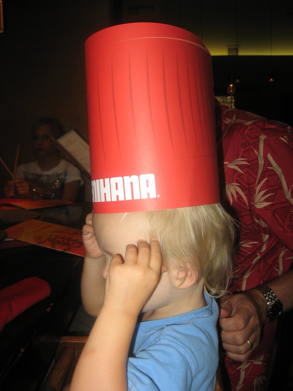 I blogged a couple of weeks ago about our new challenges in taking Quinn out to dinner. We had gone to Benihana for dinner thinking that Quinn would be entertained and happy with the dinner \”show\”. Not…so…much. I must have forgotten that I documented our evening because I just found these pics.