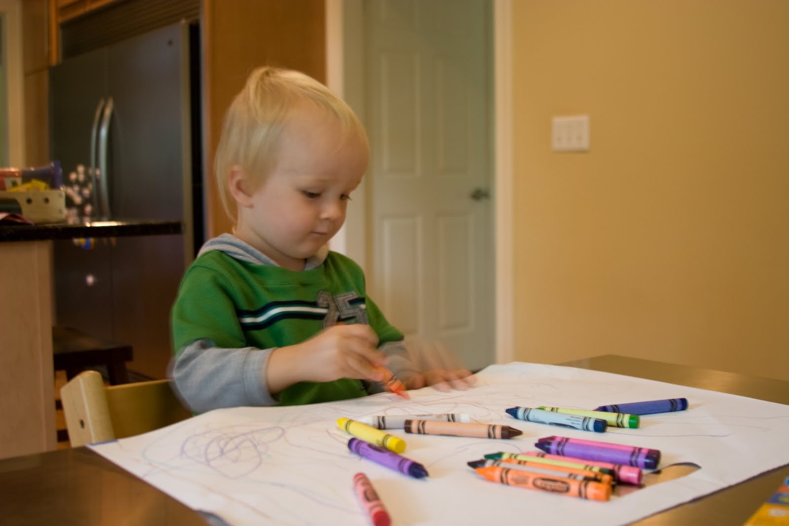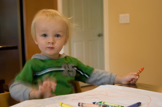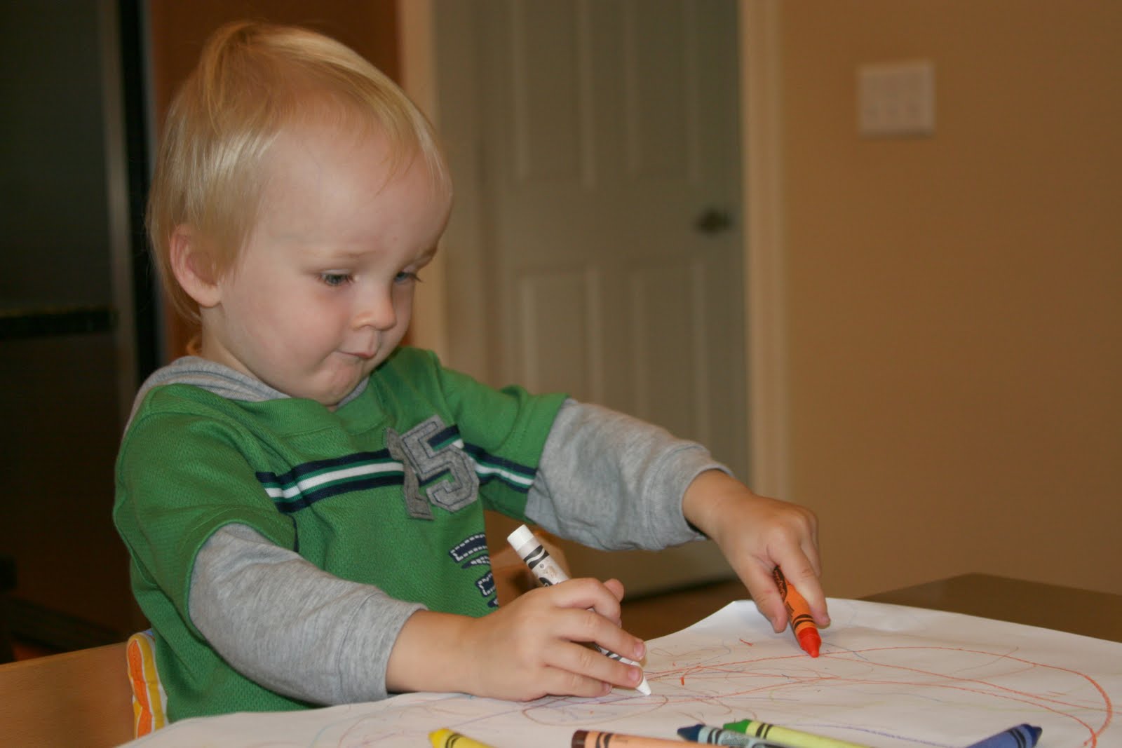 We had our first rainy, cool day this week so we were stuck in the house. I have a small craft box for Quinn so I went digging through it to see what I could find to keep him busy. I ended up pulling out some crayons and a big sheet of plain paper.