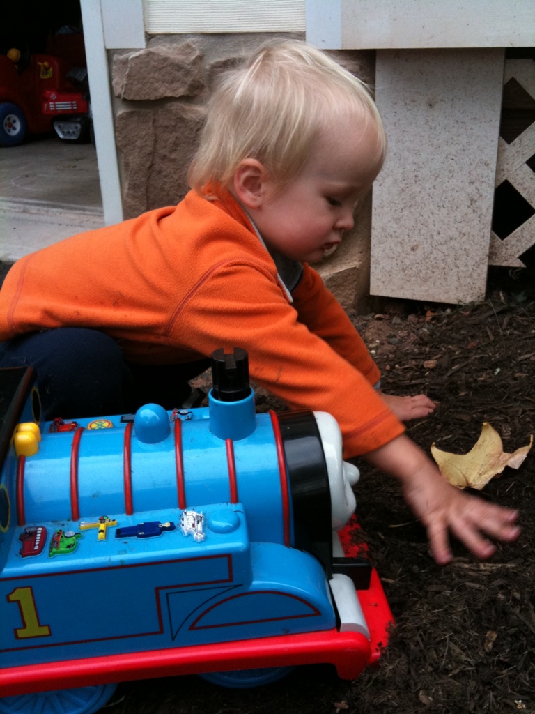 (here's a pic of him playing in the mulch — he was too busy to look at me)