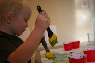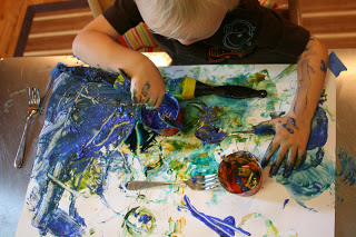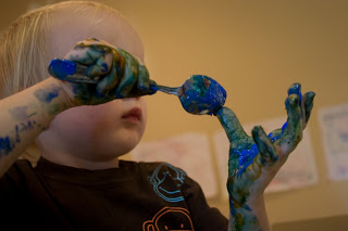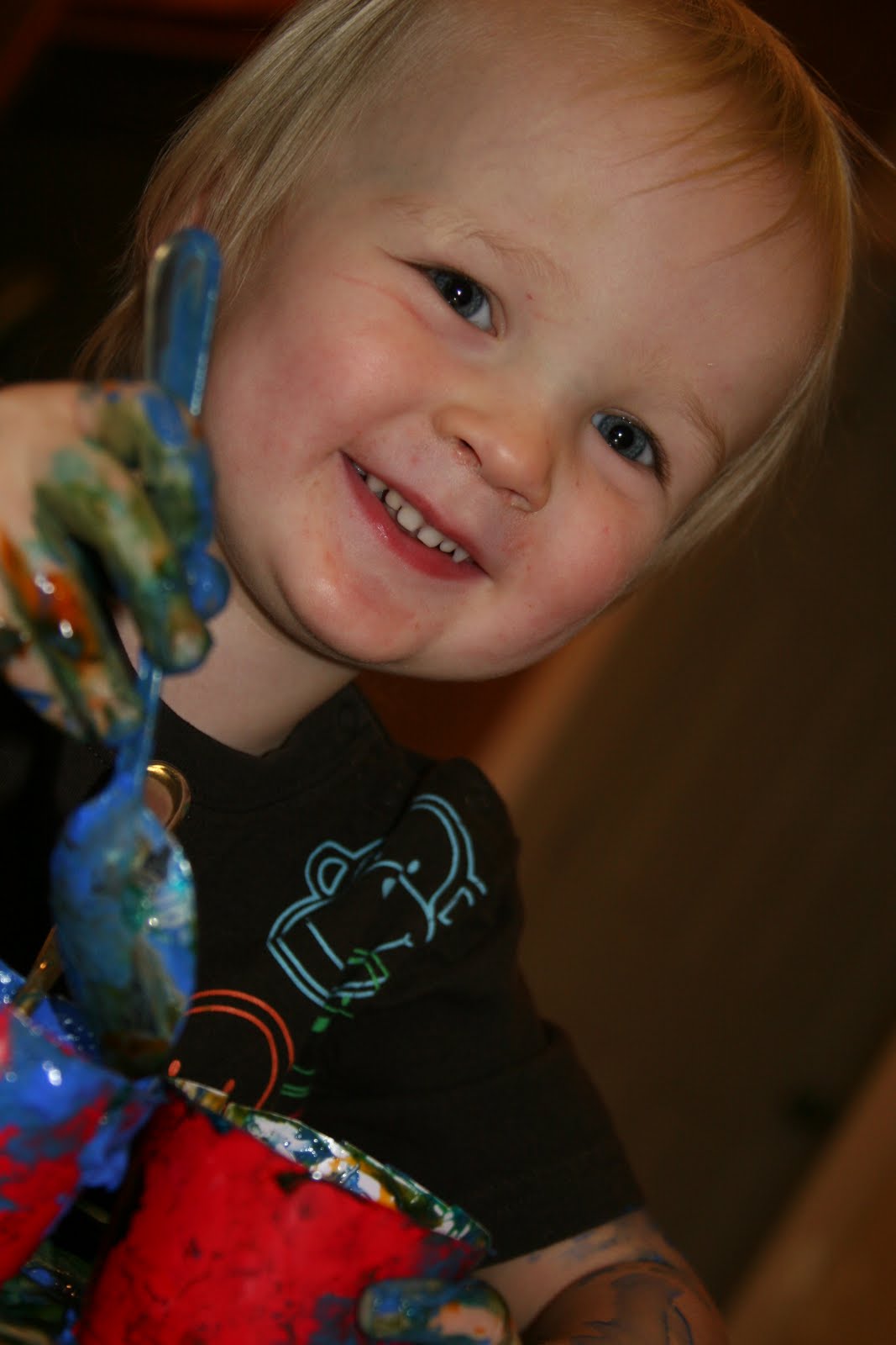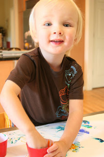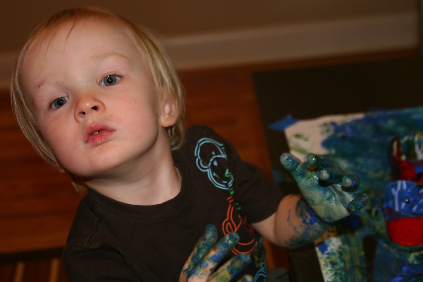 Quinn loves to draw, doodle, and write. He\’s getting pretty good at making a circle. We frequently have craft time in the afternoon when we\’re both getting a little bored. Today we tried out finger painting for the first time and he loved it — shocking ;>)