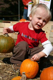 I think Quinn may have tried to lift about half of the pumpkins in the patch. There was a sign clear as day that said \”do not lift pumpkins by the stem\” but what\’s a boy to do?