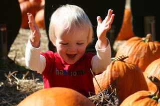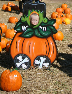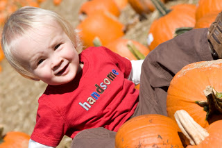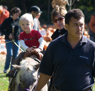 Last weekend we visited a local nursery that had a pumpkin patch, hay rides, and pony rides. It was a beautiful fall day and we had lots of fun with Grampa Corky and Grandma Meg.