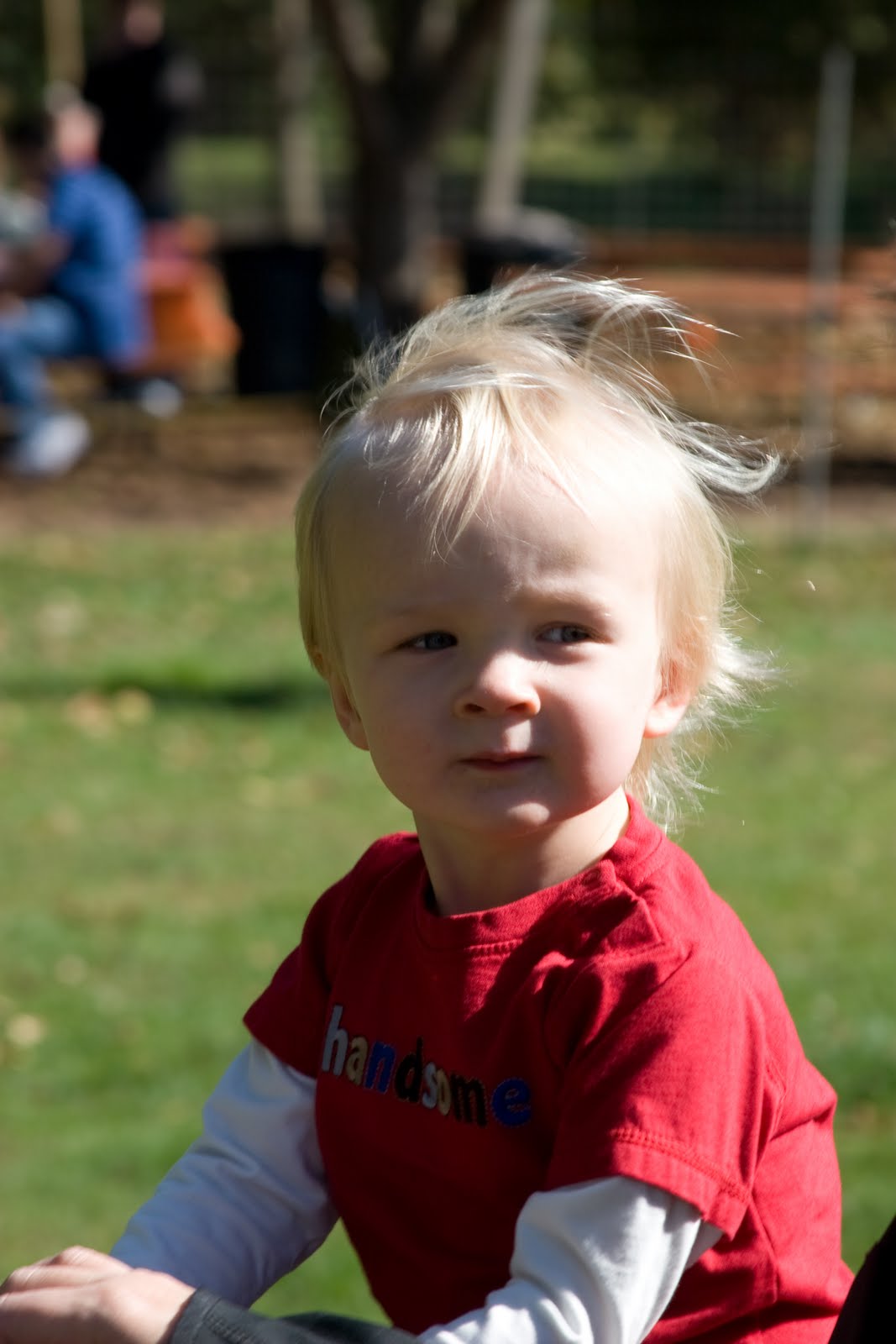 Last weekend we visited a local nursery that had a pumpkin patch, hay rides, and pony rides. It was a beautiful fall day and we had lots of fun with Grampa Corky and Grandma Meg.