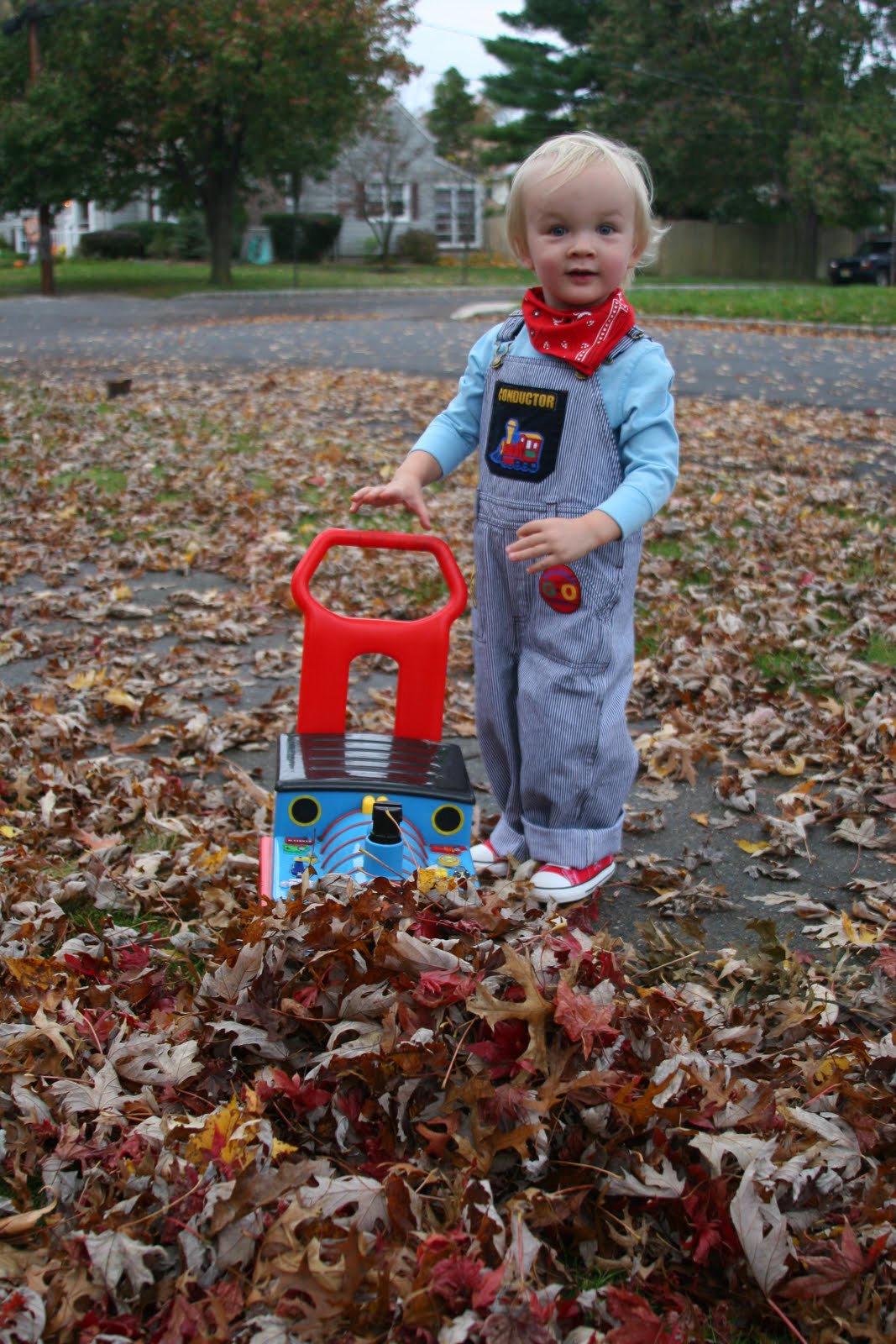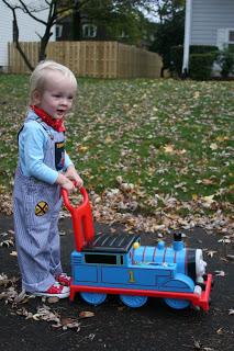 This year Barbara is here to join the halloween celebration. We had lots of early trick-or-treaters at our house. The ringing doorbells didn\’t wake Quinn from his nap. Then he got dressed in his Thomas Engineer outfit and we hit a couple of houses on our street. As expected, Quinn wasn\’t thrilled with the trick or treating so we took Thomas for a stroll around the neighborhood to check out the other trick or treaters and decorations.