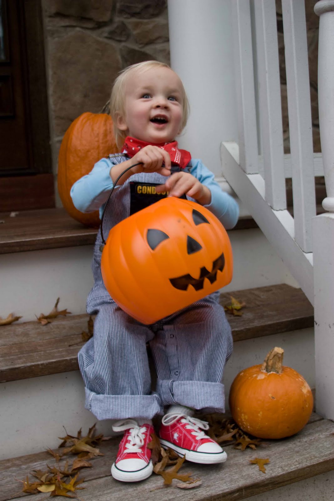 Here\’s Quinn with his pumpkin bucket ready to hit the road.