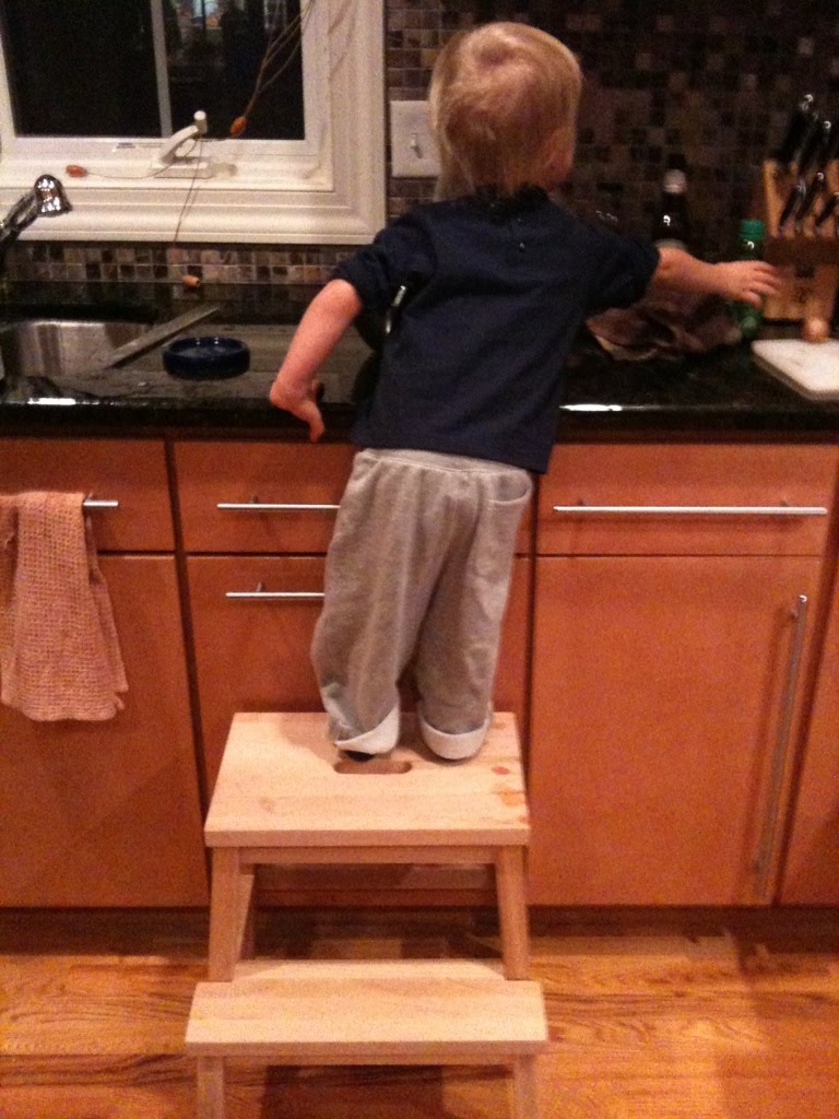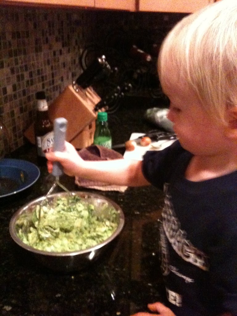 Quinn helped me with dinner tonight by making the guacamole. We got him this stool after seeing it at Robin's house and Quinn loves to pull it up to the counter and get to work. He loves being able to reach everything on the counter. Not as much fun for mama π