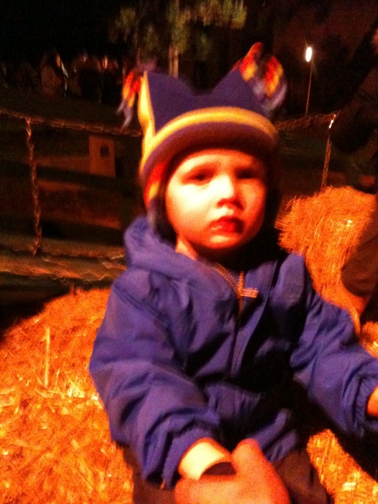 We met up with Robin and family for a campfire, hot chocolate, toasted marshmallows, and a hayride at a local nature preserve. Quinn had a great time bumping along in the wagon and had a smile on his face the whole ride. It was our first time wearing our winter coats and gloves and was a little taste of winter. (The image is from my iPhone so not great, but you get the picture.)