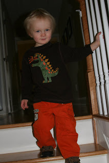 Here we are at home getting ready to head out. Love the orange pants (thanks grams π