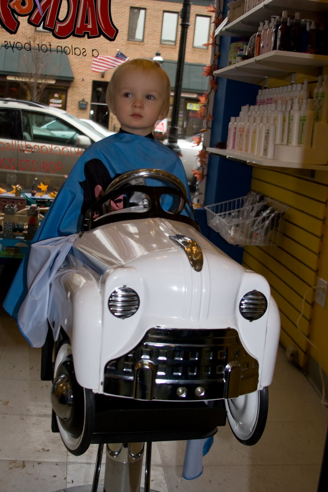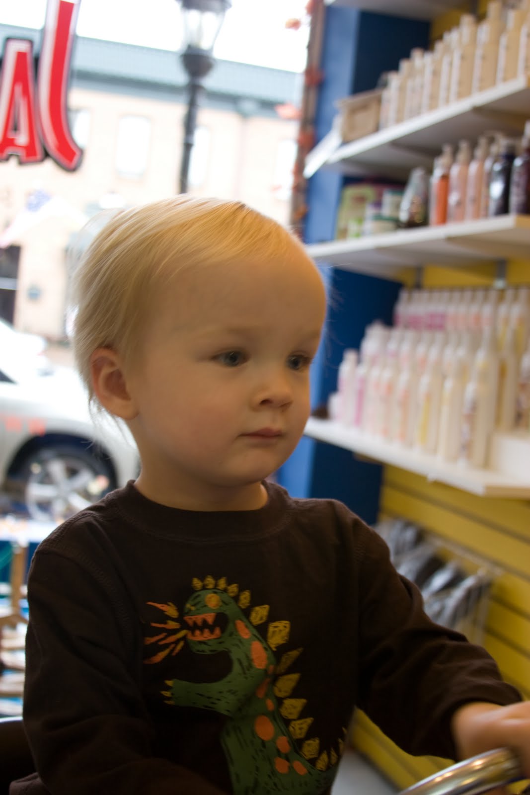 Quinn had his first non-mama haircut today. He didn\’t love it but he didn\’t hate it either. The haircut \”salon\” has a train table, fun chairs for the kids to sit in during the haircut, and a choice of videos to watch during the haircut. Quinn watched a little Thomas (shocking!) during his haircut. There was also a little boy getting a buzz and was SCREAMING his head off.