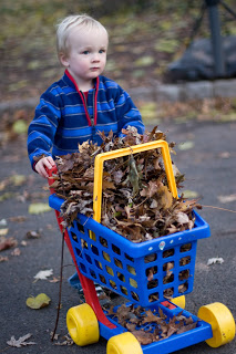 After Quinn\’s nap, we enjoyed a walk to the park. Someone had dumped a bunch of toys and Quinn instantly went for a play shopping cart. We pushed it around the park and neighborhood filling it with leaves.