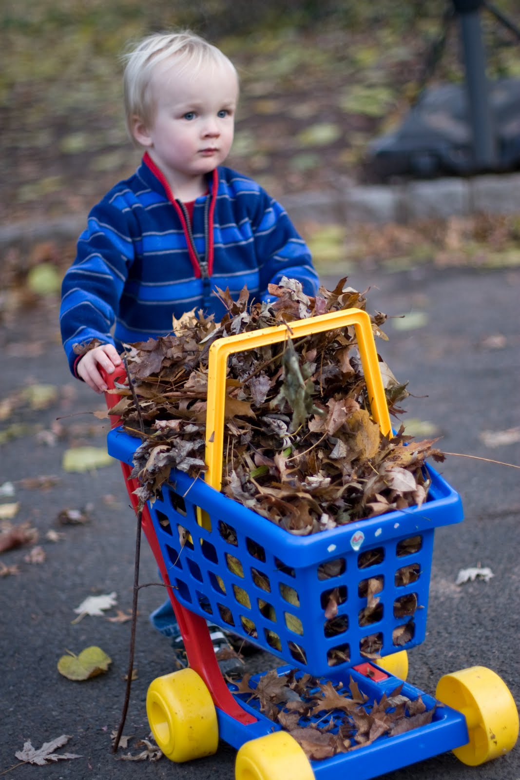 After Quinn\’s nap, we enjoyed a walk to the park. Someone had dumped a bunch of toys and Quinn instantly went for a play shopping cart. We pushed it around the park and neighborhood filling it with leaves.