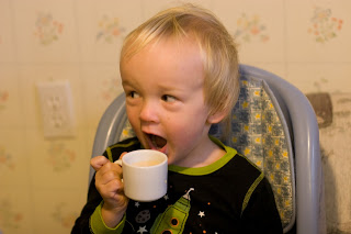Hmmmm…coffee 🙂 Grams had an espresso sized cup that she had bought for Miss Sami that was the perfect size for some milky coffee for Q.