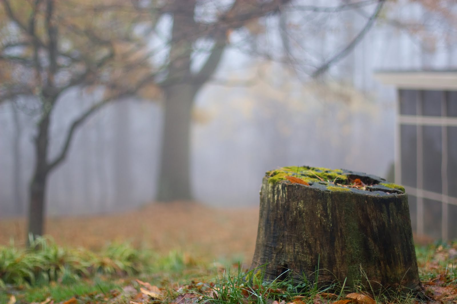 We woke up to a very foggy Thanksgiving morning. I looked out the bedroom window and saw an eerie fog with lots of bright fall colors. I ran out and took these shots before Quinn woke up. Take a look.