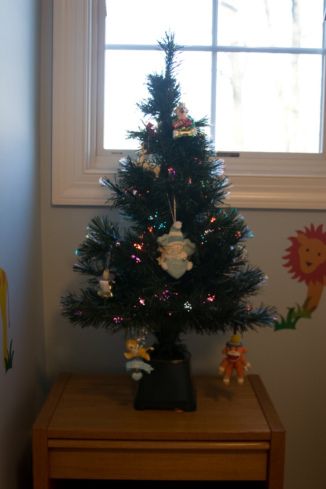 We also found this little fiber optic tree in our stuff. It is now Quinn\’s tree and is in his room decorated with all of his ornaments.